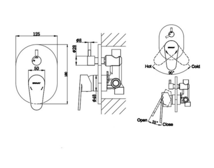 Смеситель встраиваемый в стену 2-функц (латунное тело в комплекте)