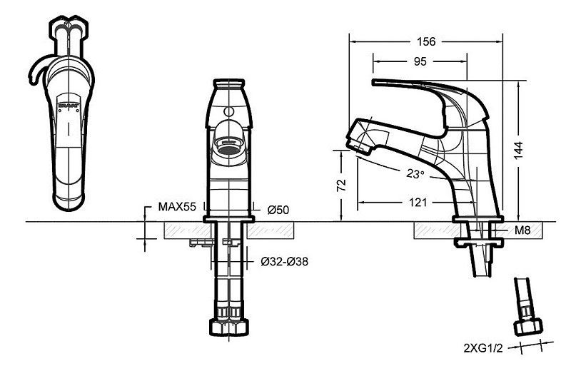 Смеситель Bravat Fit для раковины сделан из латуни. Прочен, надежен, термостоек, компактен. Подойдет даже для небольшой раковины. Модель однорычажная: и напор, и температура воды настраиваются одним движением. Подводка гибкая, что может быть особенно важно владельцам небольших помещений с нестандартной планировкой.