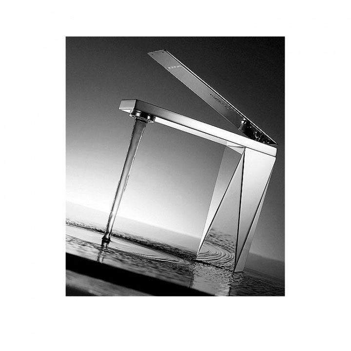 Латунный смеситель для умывальника выполнен в необычной манере. Отличительные черты серии Iceberg – грубые, рубленые очертания, агрессивный дизайн и использование ломаной геометрической формы – превращают эти бытовые приборы в функциональные предметы искусства. Зеркальное хромированное покрытие делает внешний вид смесителя еще более выразительным.