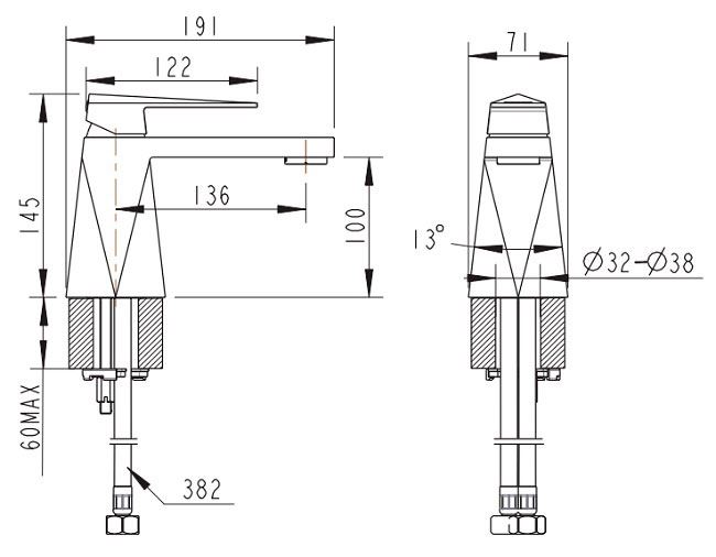 Расположение смесителя