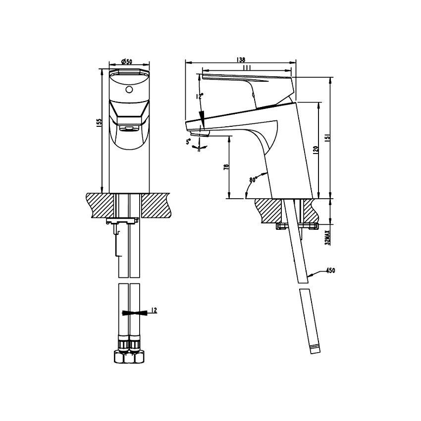 Однорычажный смеситель с установкой на раковину. Модерн в обновленном исполнении – обтекаемые и в то же время достаточно агрессивные очертания смесителя делают его стильным, выделяющимся элементом интерьера ванной комнаты. Керамический картридж, гибкая подводка 1/2'', аэратор.