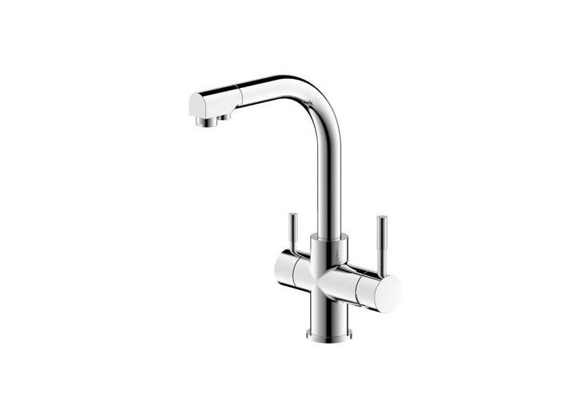 Смеситель для кухни Bravat Palace F729261CP-RUS оснащен высоким поворотным изливом для большего удобства использования при приготовлении пищи и для мытья габаритной посуды, а также имеет специальное подключение к фильтру с питьевой водой. Необычная форма модели сразу привлекает внимание, простота управления и функциональность элементов делает этот смеситель удобным в использовании. Ручки рычагов, тонкие и изящные, предназначены для разных целей: одна позволяет без труда регулировать воду, добиваясь оптимального результата, другая переключает на фильтр с питьевой водой. Керамический картридж Sedal 35 мм, установленный в смесителе, сертифицирован по ISO 9001:2000 (высочайший стандарт качества для сборочных предприятий). Он работает с минимальным уровнем шума. Картридж этого немецого производителя имеет непревзойденную надежность, так как каждая партия картриджей проходит проверку под давлением более 3,5 атм, а это значит, что даже в случае резкого повышения давления в водопроводной системе, картридж выдержит нагрузку и не допустит затопления помещения. Благодаря аэратору Neoperl, которым оснащен смеситель, он подает воду экономичной струей, что, впрочем, не сказывается на силе напора.