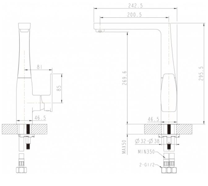 Расположение смесителя