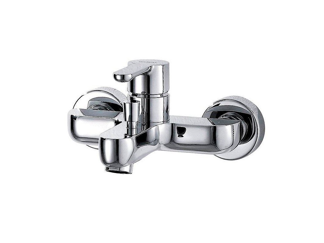 Компактный, элегантный настенный смеситель классической формы с изливом и возможностью крепления душевого шланга. Невероятно очаровывает блеск хромированной глади корпуса и его округлые, словно стекающие каплей вниз, полусферические формы. Подберите к смесителю удобную душевую лейку в современном стиле и такой комплект украсит вашу ванную комнату.