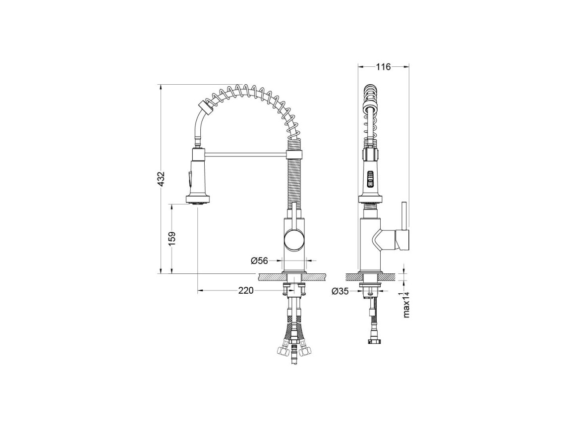 • оснащен гибким поворотным пружинным изливом 160°, удобен для мытья крупных предметов
