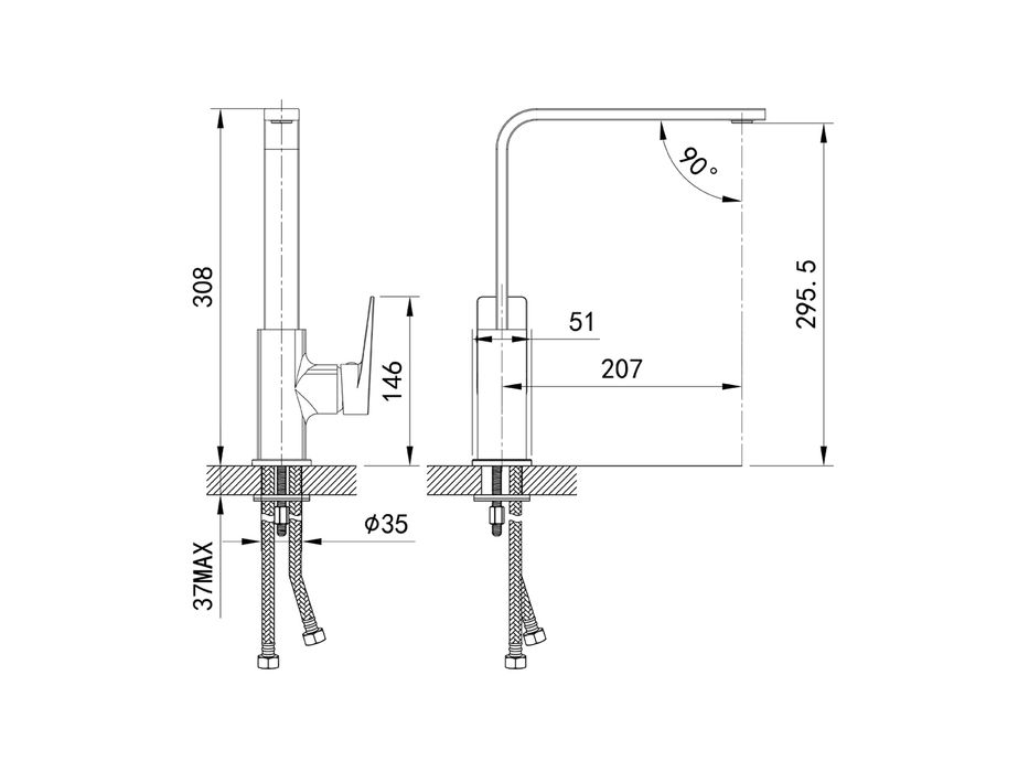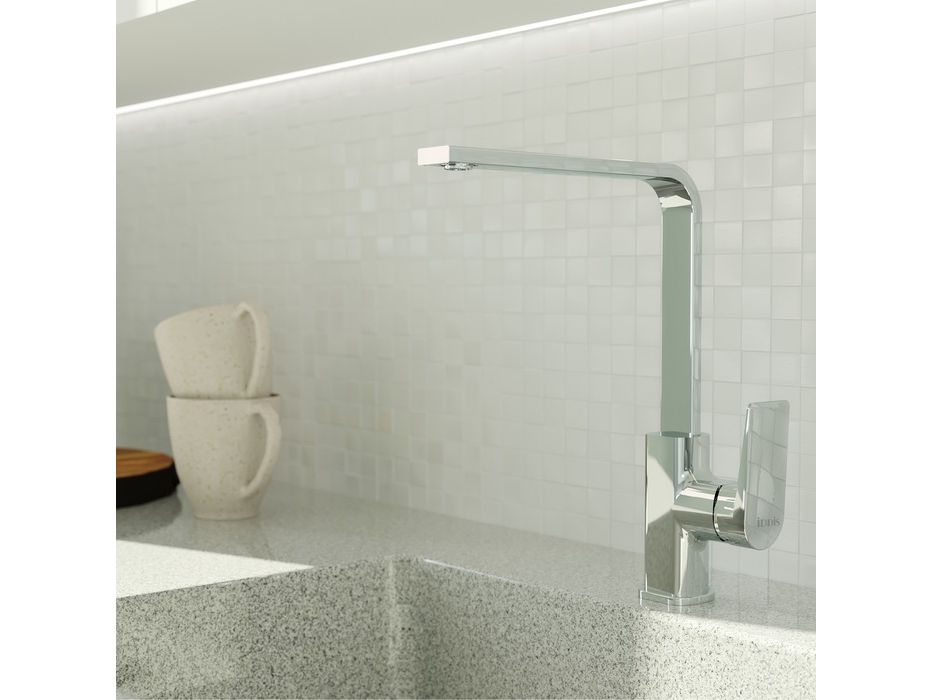 Смеситель для кухни Bridge — это чистые геометрические формы, которые отлично дополнят интерьер кухни в современном стиле. Благодаря поворотному изливу пользоваться им удобно на любой кухонной мойке. Может быть установлен как на мойку, так и на столешницу.