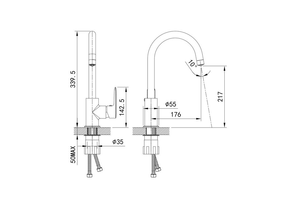 Гибкая подводка из нетоксичной EPDM резины в оплетке из нержавеющей стали М10 - 1/2 длина 350 мм |