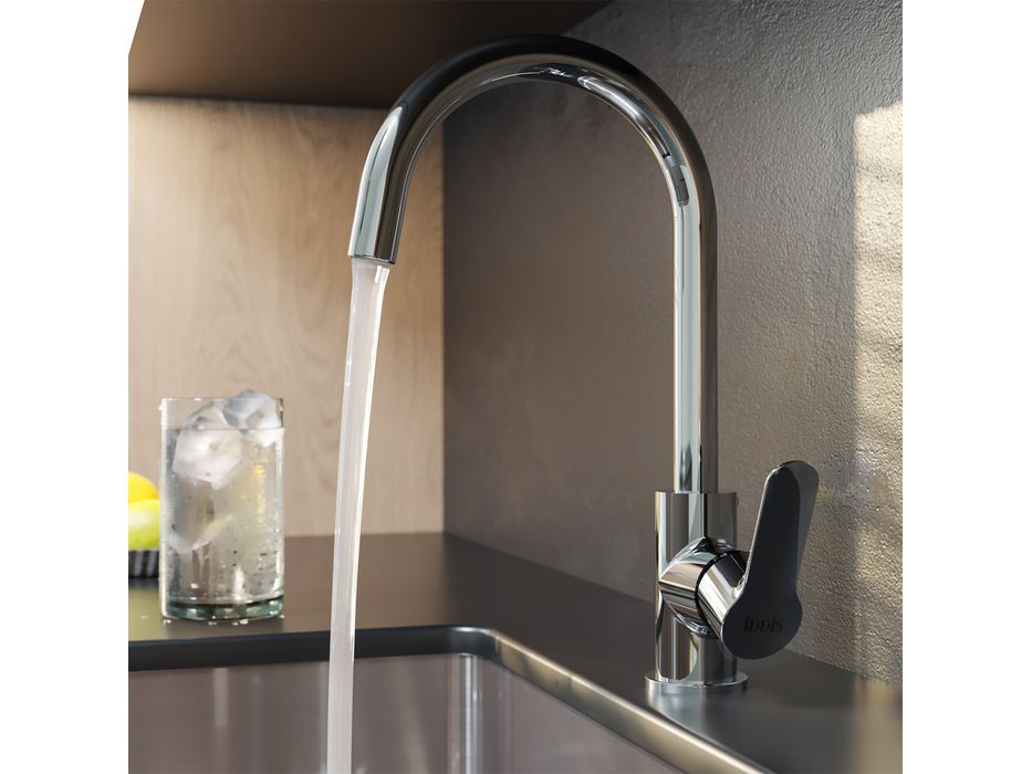 Смеситель для кухни Cuba с каналом для фильтрованной воды представляет уникальную технологию управления фильтрованной водой, которая практически не имеет аналогов. Теперь, чтобы налить стакан чистой воды, не нужна вторая ручка, — достаточно просто повернуть основную ручку в закрытом состоянии.