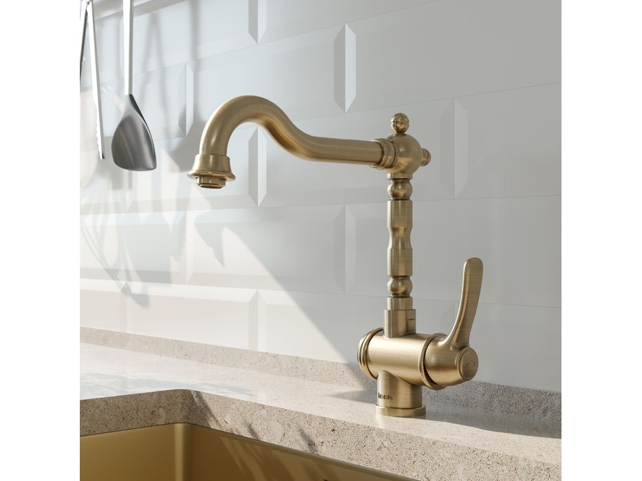 Смеситель для кухни Oldie – превосходное сочетание утонченной формы и современного функционала в ретро стилистике. Со смесителями из коллекции Oldie легко воплотить в жизнь любые дизайнерские идеи – оригинальные детали и благородный бронзовый блеск корпуса легко сочетаются с любыми фактурными поверхностями и интерьерными решениями. Излив поворачивается на 360 градусов, благодаря чему им будет удобно пользоваться на любой кухонной мойке. В комплекте гибкая подводка и крепеж.