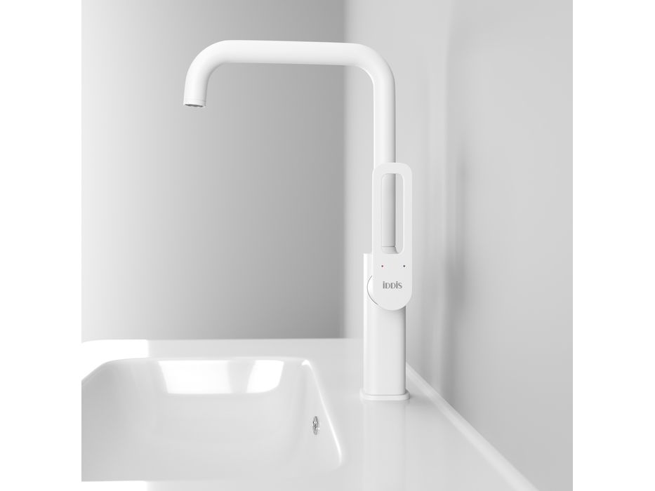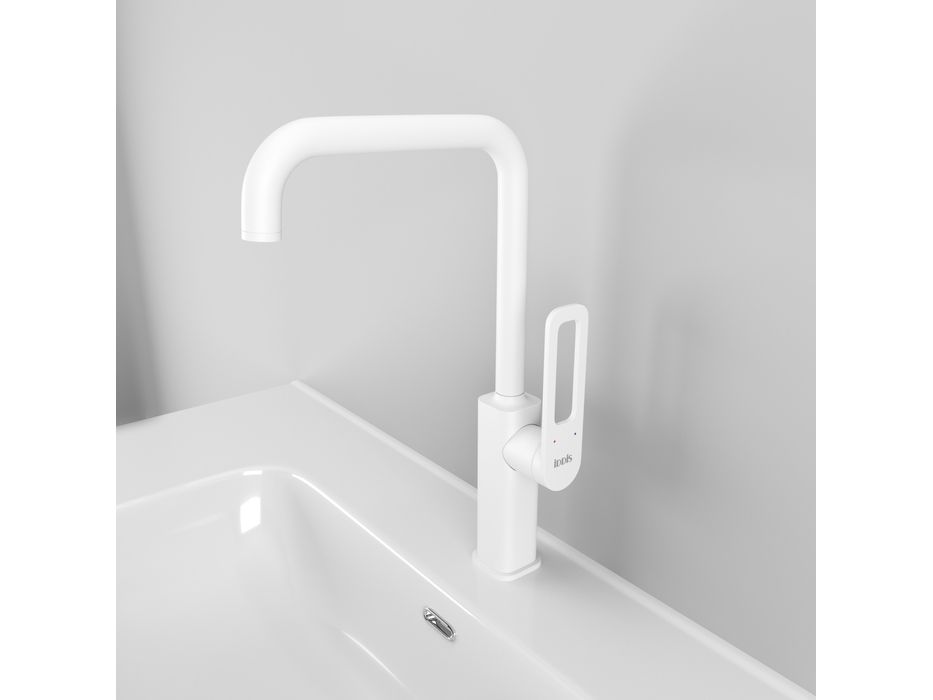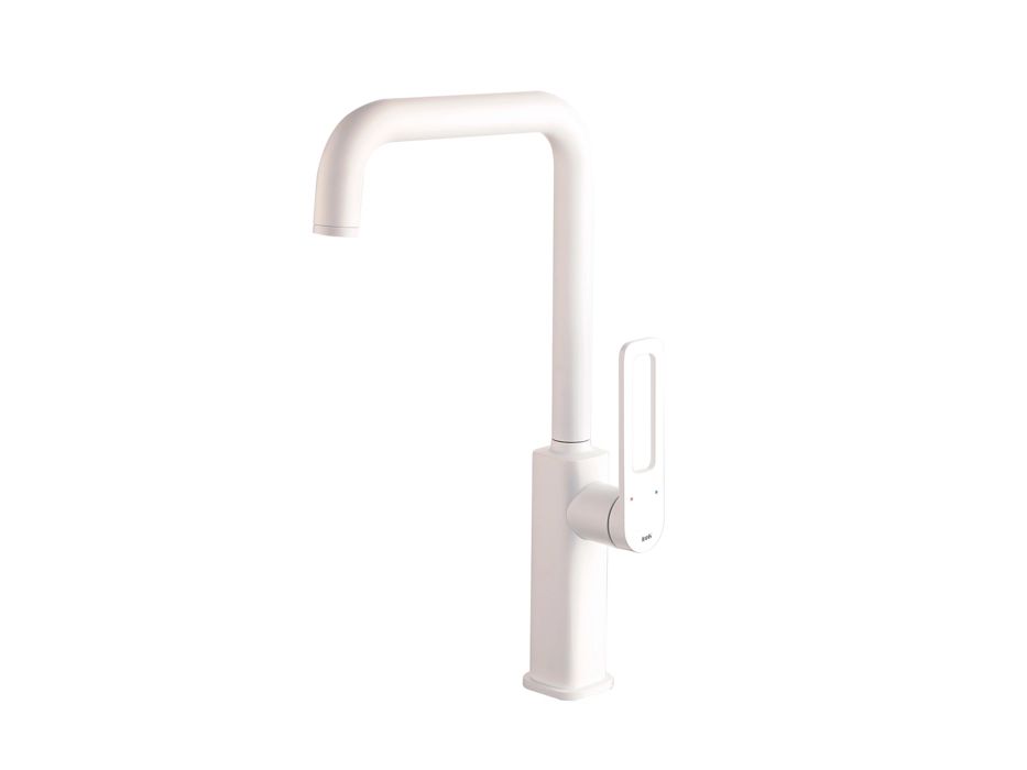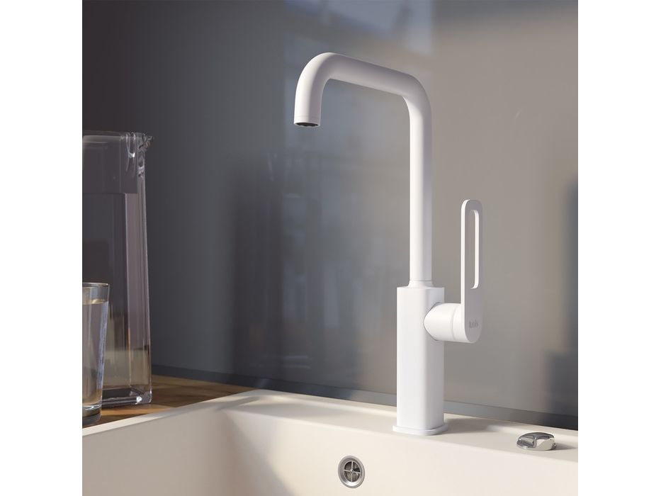 Смеситель для кухни Slide в актуальном матовом белом цвете. Ручка поворачивается на себя, не касаясь стены, что позволит установить смеситель на любом расстоянии от нее. Отверстие-петля на ручке выполняет декоративную и при этом практичную роль — ее легко захватить даже намыленной рукой, отрегулировав напор или температуру. Благодаря высокому изливу смеситель будет удобен в использовании даже с неглубокой мойкой, а за счет высокого основания может использоваться с накладными умывальниками, в том числе, в ванной.