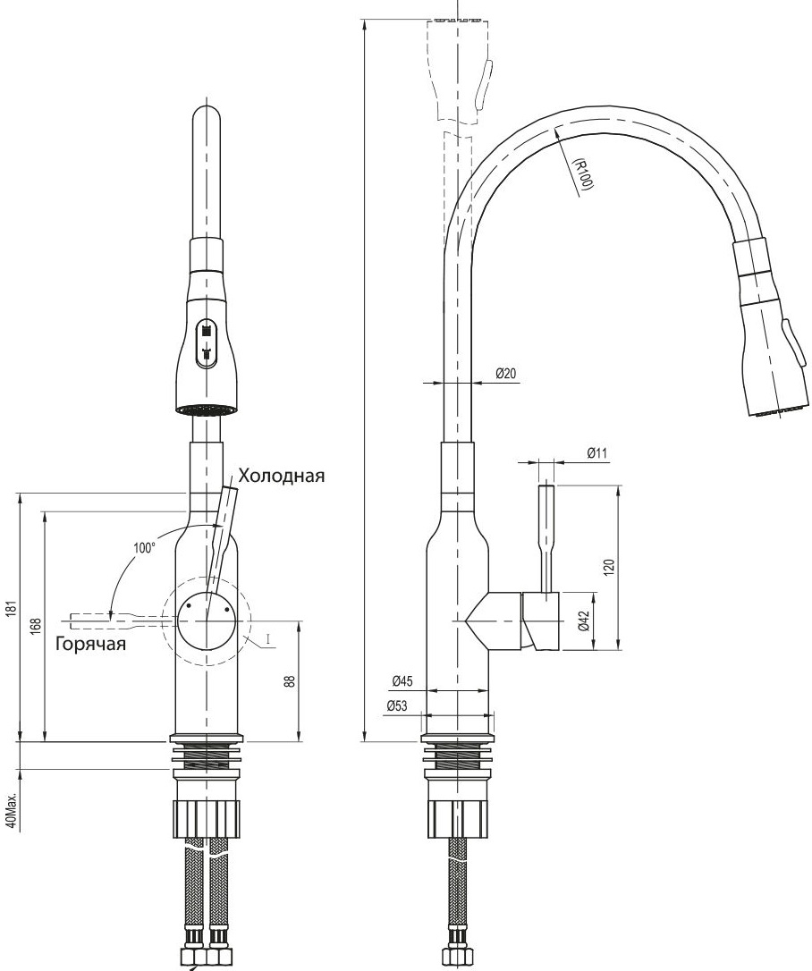 Выдвижная лейка смесителя