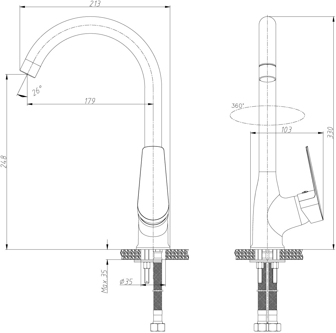 Смеситель Rossinka S S35-23 для кухонной мойки