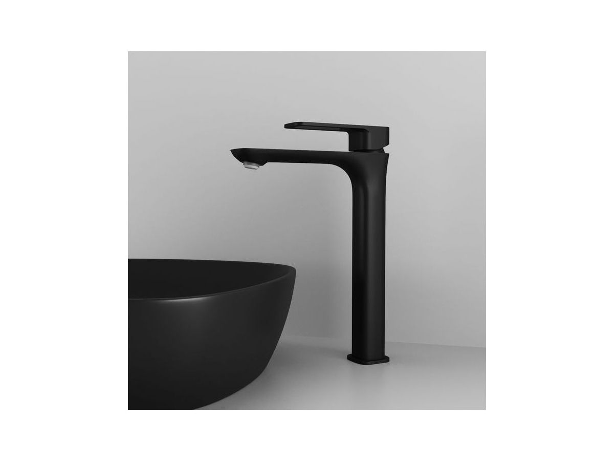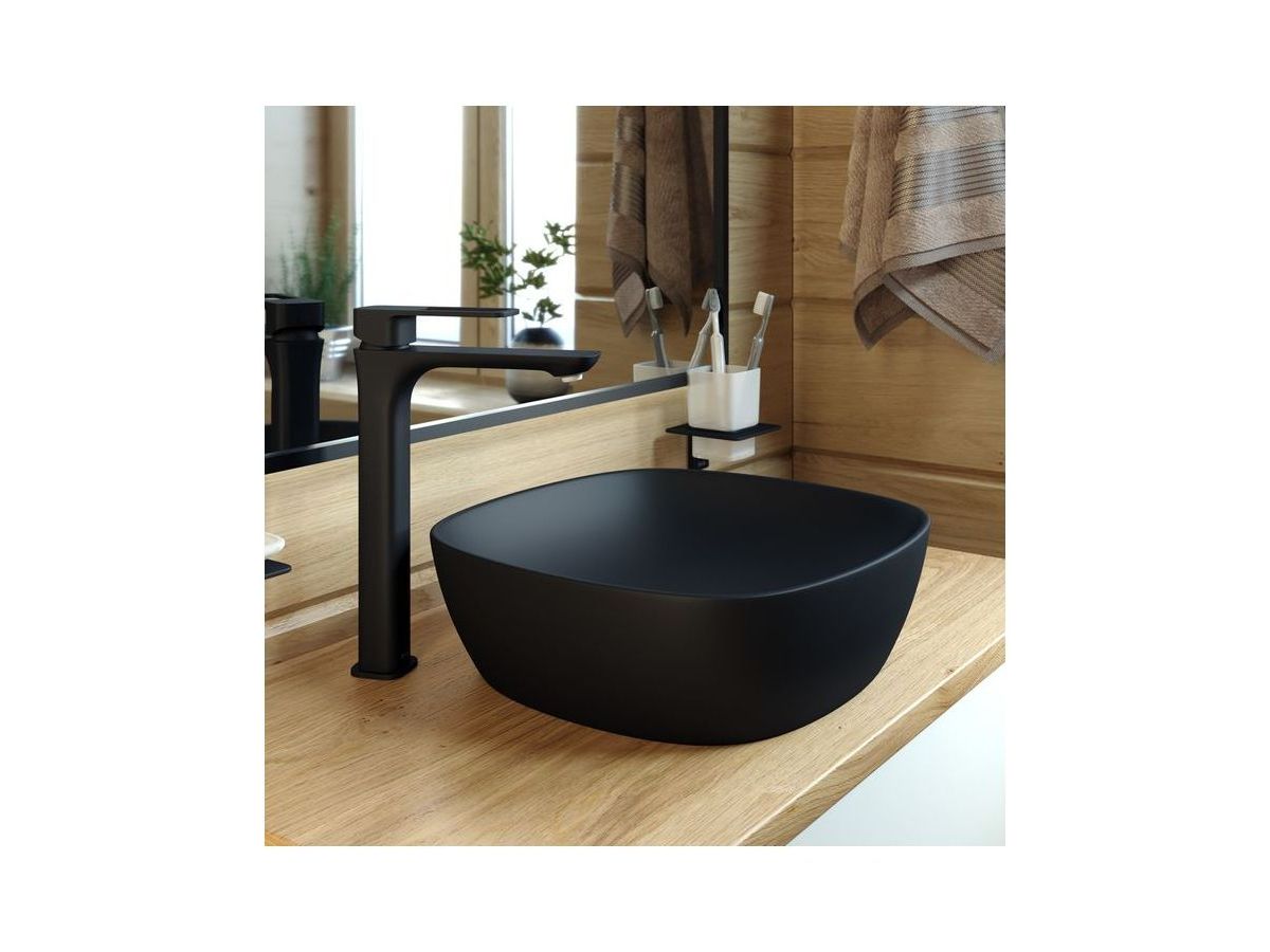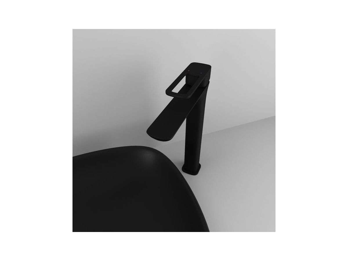 Высокий смеситель для настольного умывальника Slide в трендовом черном цвете отлично дополнит настольный умывальник-чашу. Отверстие-петля на ручке выполняет декоративную и при этом практичную роль — ее легко захватить даже намыленной рукой и отрегулировать напор или температуру. Силиконовый аэратор эстетично скрыт в корпусе излива. В комплекте гибкая подводка и комплект крепежа.