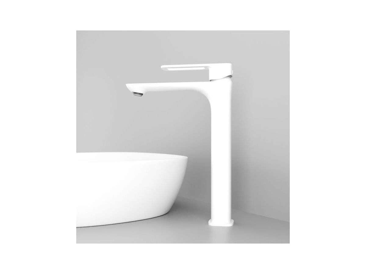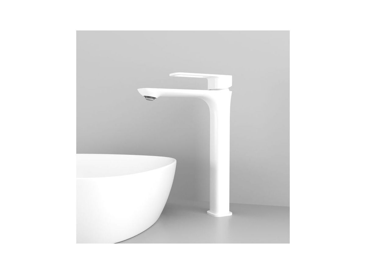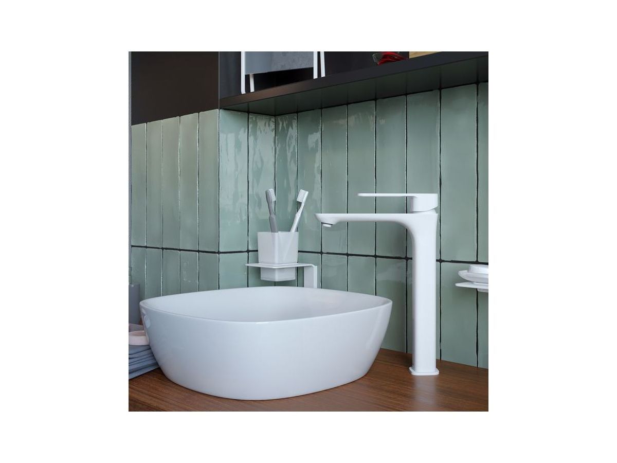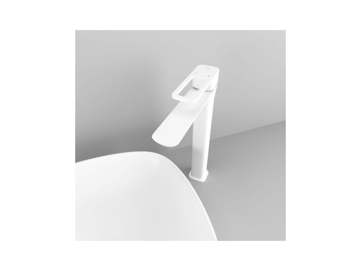 Высокий смеситель для настольного умывальника Slide в популярном белом цвете отлично дополнит настольный умывальник-чашу. Отверстие-петля на ручке выполняет декоративную и при этом практичную роль — ее легко захватить даже намыленной рукой и отрегулировать напор или температуру. Силиконовый аэратор эстетично скрыт в корпусе излива. В комплекте гибкая подводка и комплект крепежа.