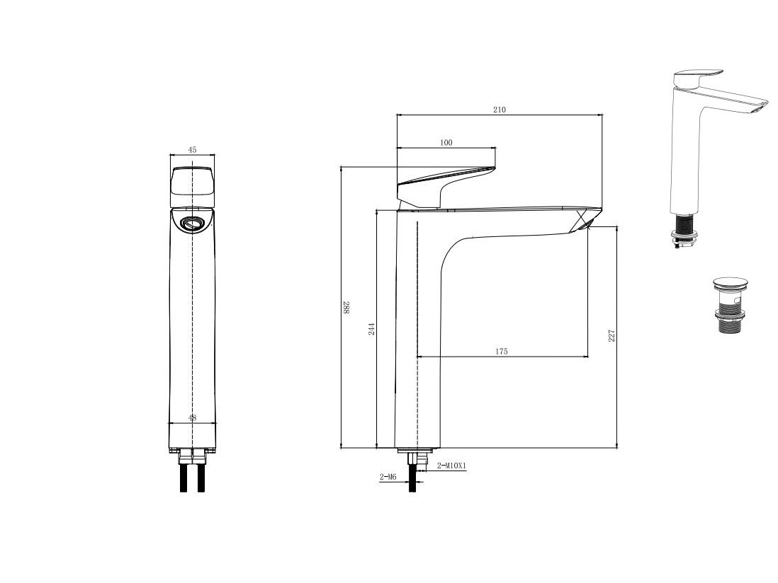• донный клапан клик-клак из нержавеющей стали марки SUS 304 в цвет смесителя в комплекте
