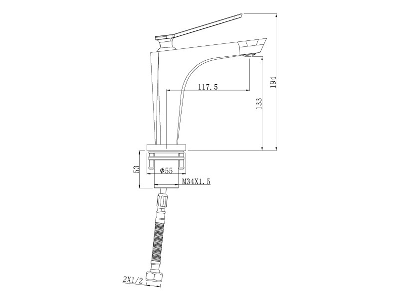 Короткий излив с выносом 117 мм