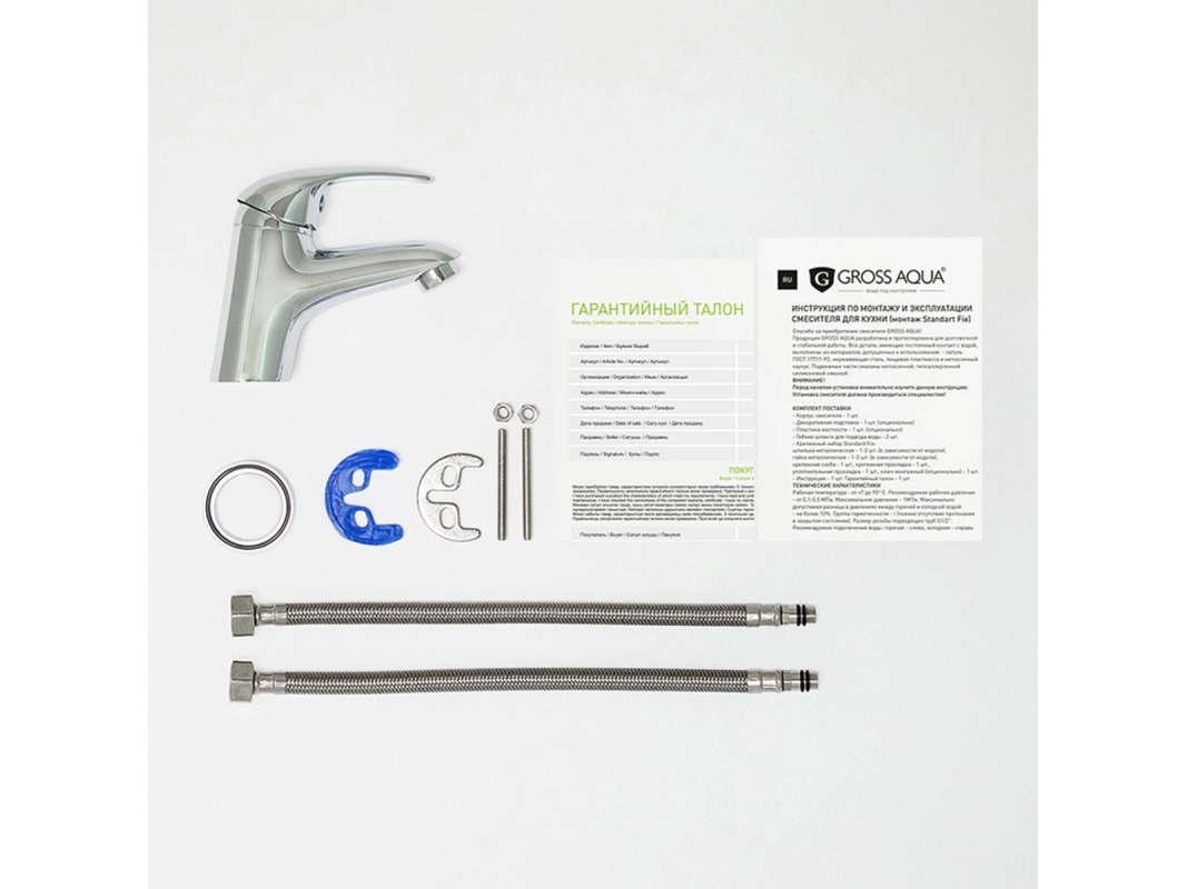 Назначение: Для умывальника Тип смесителя: Одноручковый Запорный механизм: Картридж 35 мм Излив: Литой Материал: Латунь Покрытие: Хром Гарантия: 10 лет; Производство: GROSS AQUA (Россия)