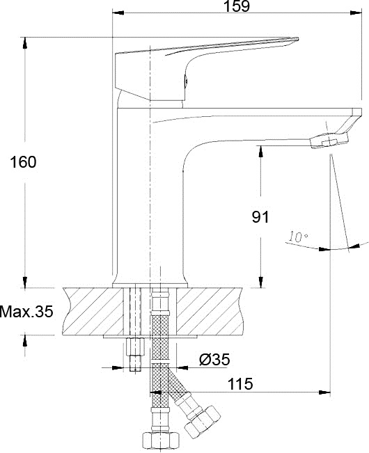 Высота до центра излива