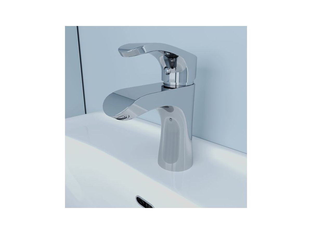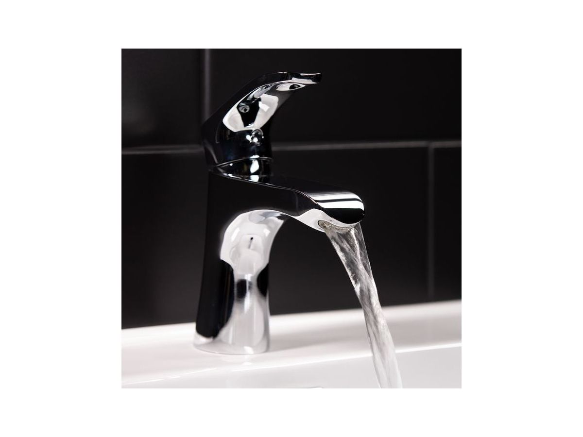 Смеситель для умывальника Joker имеет широкий рассекатель, который создает объемный комфортный поток воды, как в каскадных смесителях. Рассекатель своей «улыбкой» придает изливу особую форму — такое исполнение и ручка необычной формы создают дизайн, который практически не имеет аналогов. Что удобно, рассекатель не требует чистки.