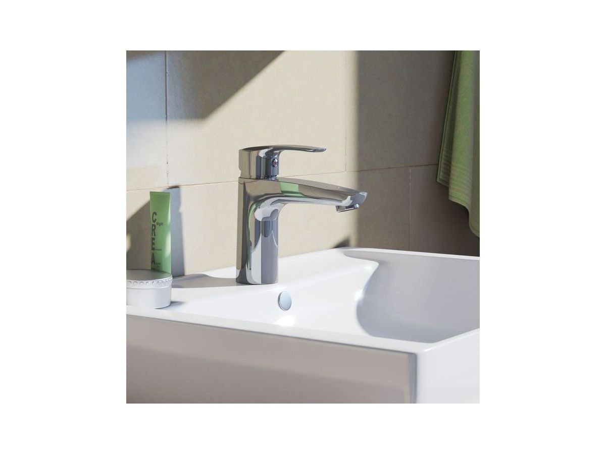 Смеситель для умывальника Ray имеет универсальный дизайн и подойдет для различных вариантов интерьерных решений. Покрытие устойчиво к появлению разводов и отпечатков пальцев. Аэратор в смесителе расположен под наклоном, направляя струю в удобную точку, что делает комфортным и мытье рук, и наполнение больших емкостей.