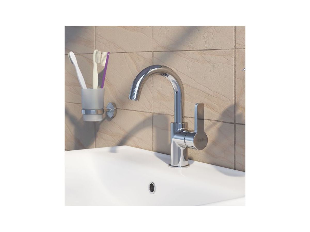 Смеситель для умывальника Sena с поворотным изливом благодаря универсальному дизайну подойдет к любой ванной комнате, а за счет поворачивающегося излива будет удобен даже на небольшом умывальнике.