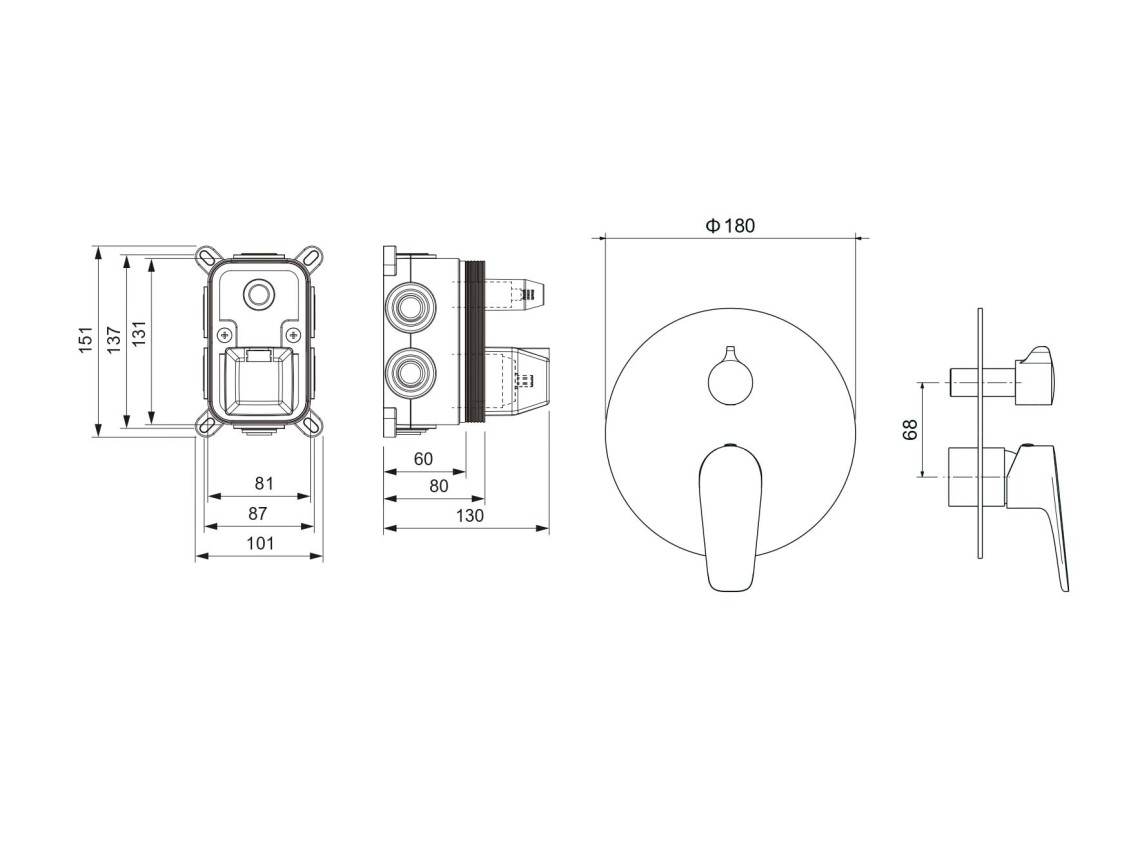 • Смеситель (внешняя и скрытая часть)