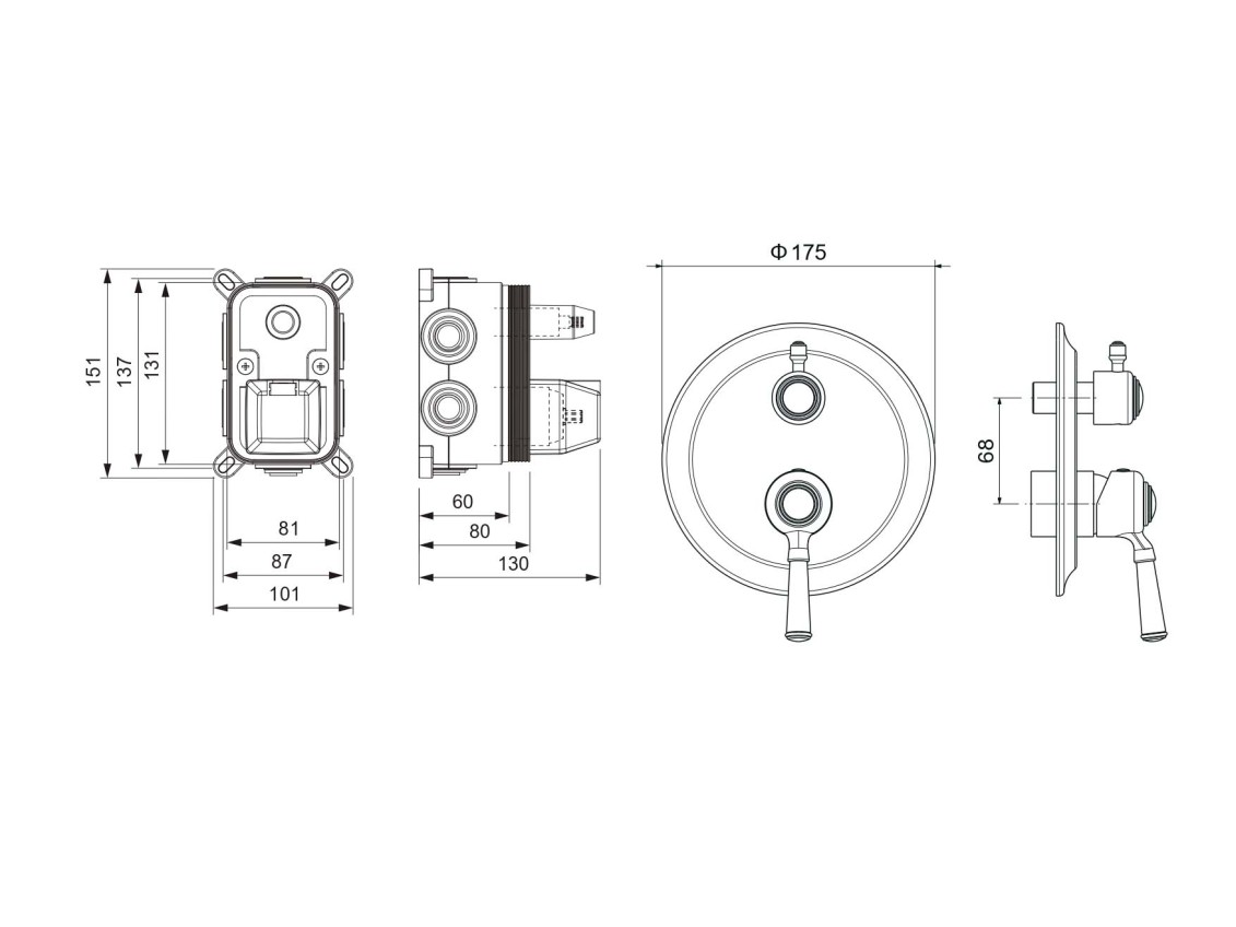 • Смеситель (внешняя и скрытая часть)