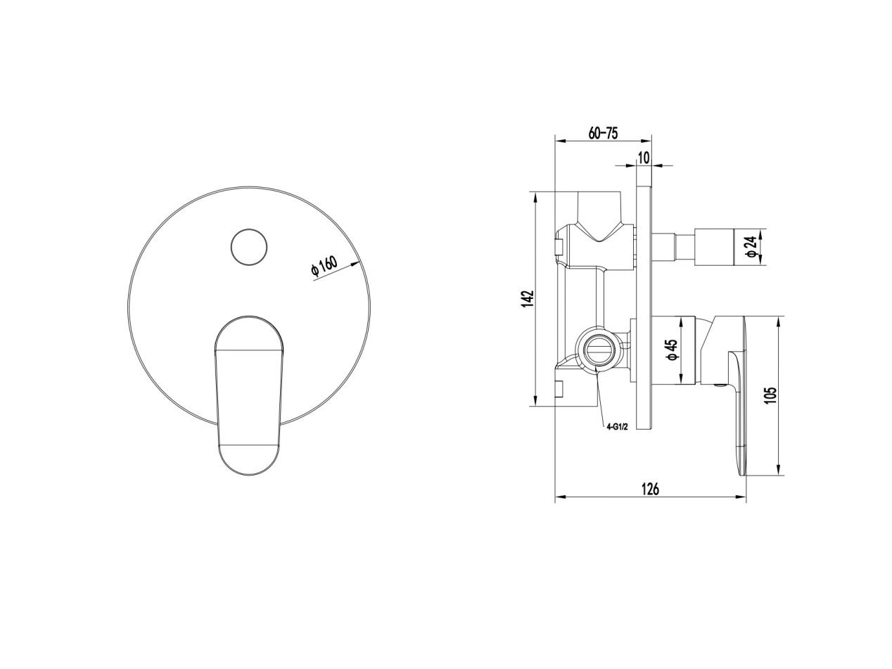 • Смеситель из латуни на 2 потребителя (внешняя и скрытая часть)