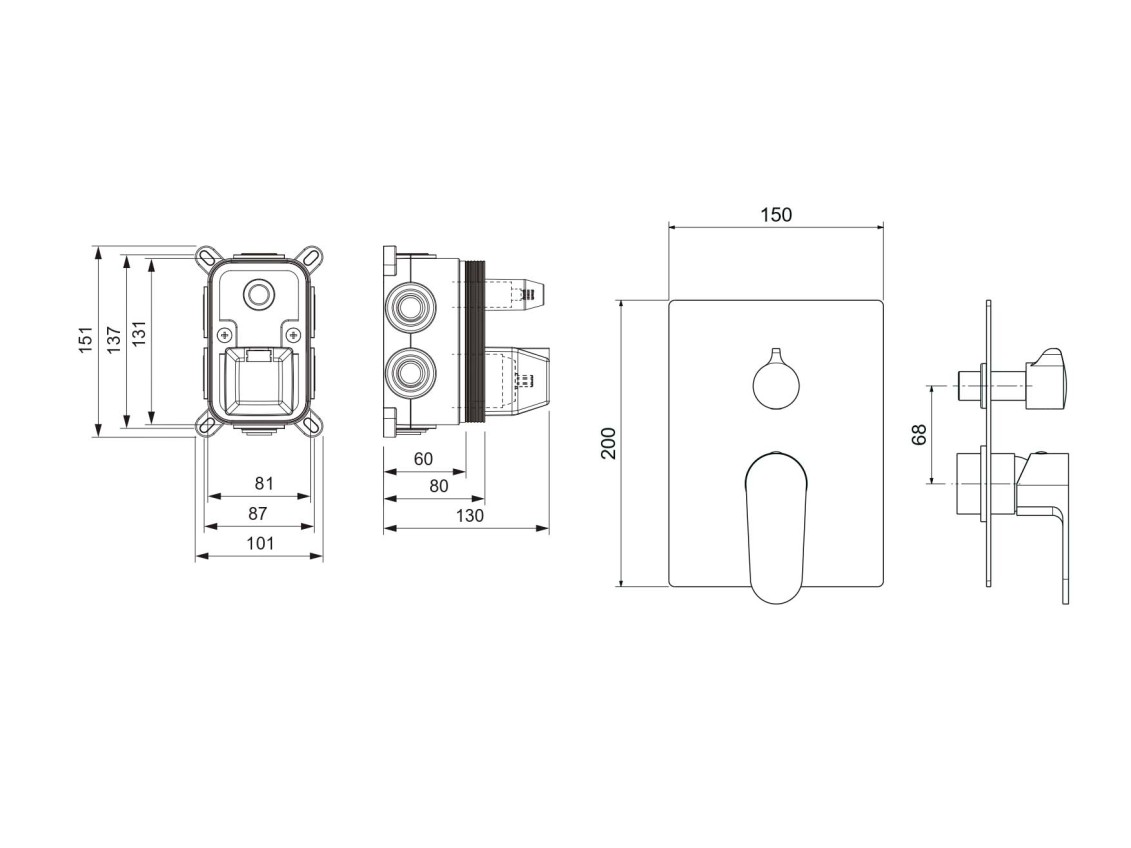 • Смеситель (внешняя и скрытая часть)