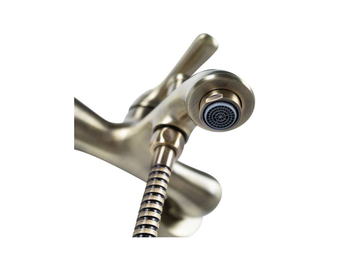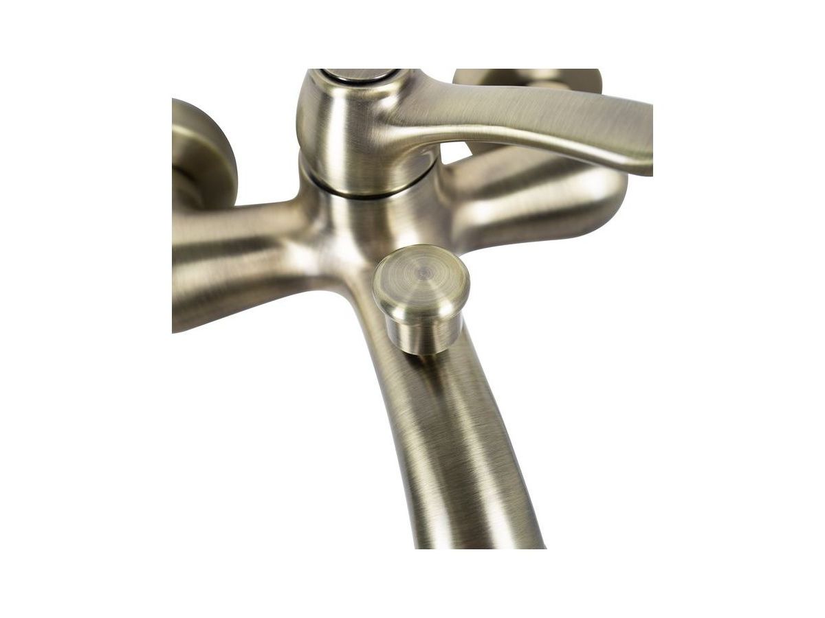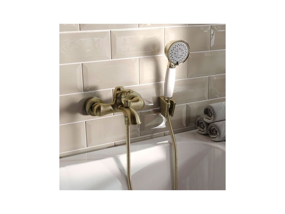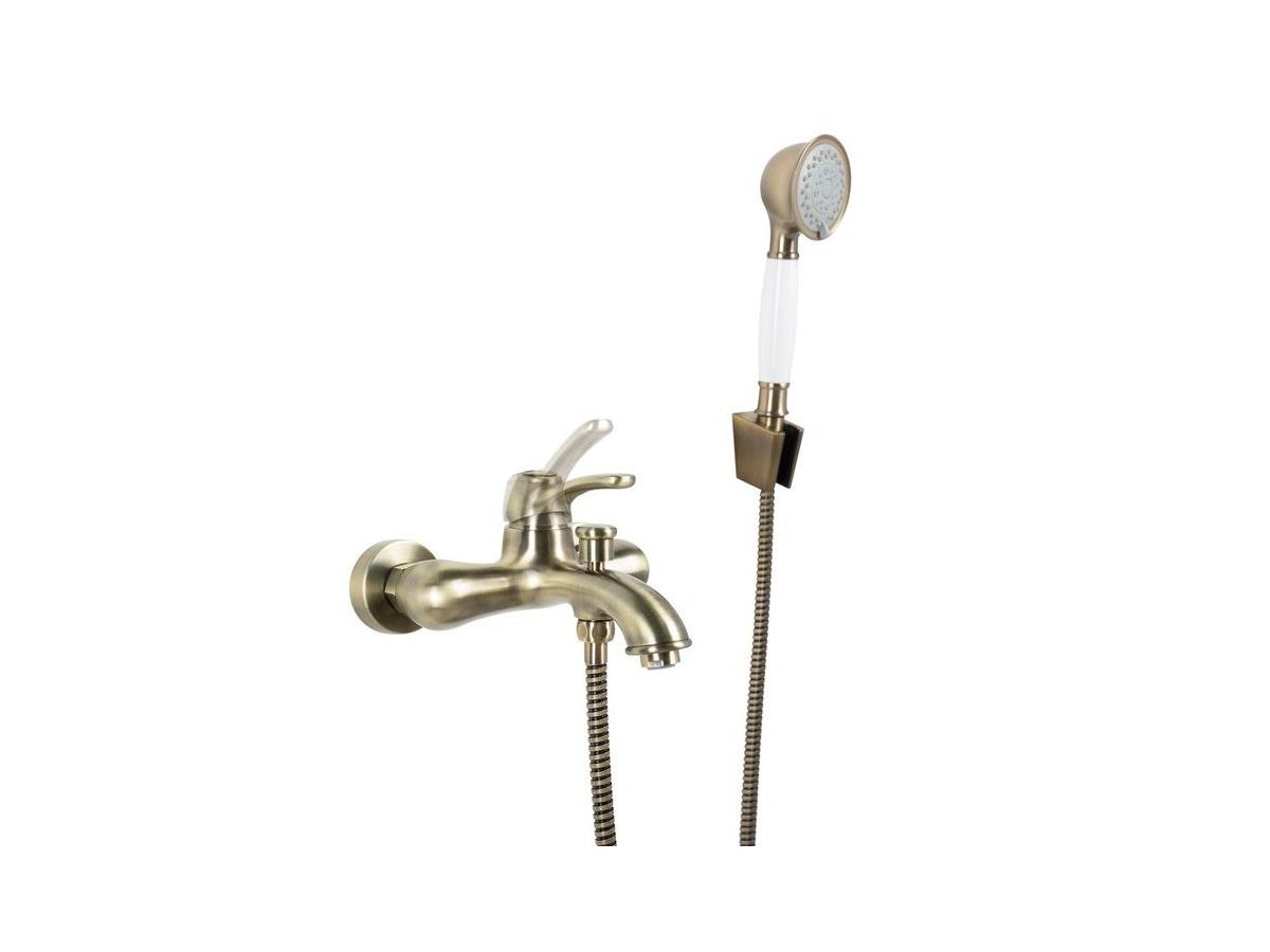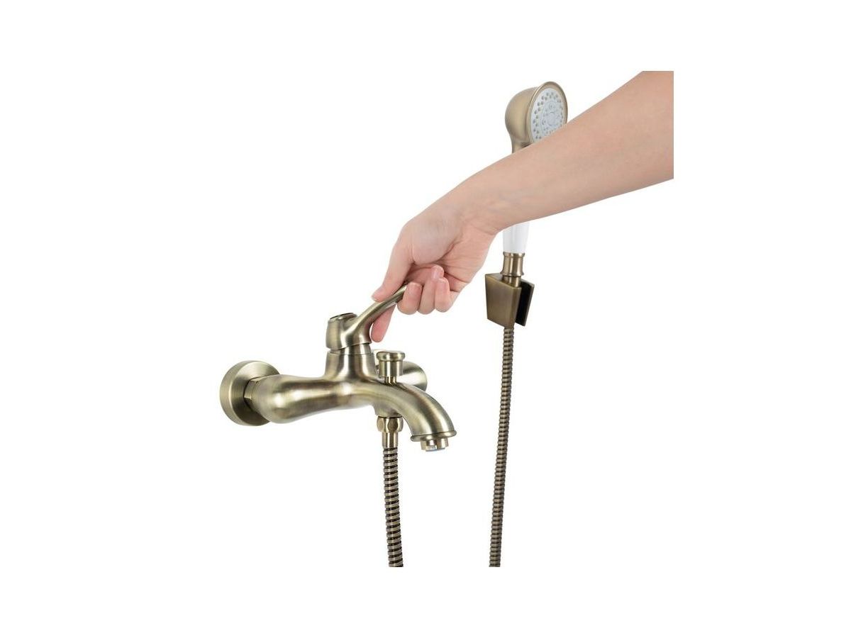 Смеситель для ванны Oldie – превосходное сочетание утонченной формы и современного функционала в ретро стилистике. Со смесителями из коллекции Oldie легко воплотить в жизнь любые дизайнерские идеи – оригинальные детали белого цвета и благородный бронзовый блеск корпуса легко сочетаются с любыми фактурными поверхностями и интерьерными решениями. Продуманные пропорции, наклон излива и положение аэратора позволяют с комфортом размещать руки под смесителем, что делает его удобным для всей семьи. В комплекте душевые аксессуары в тон смесителю — лейка с держателем и гибкий шланг для душа (1,5 м) в оплетке из нержавеющей стали с защитой от перекручивания.