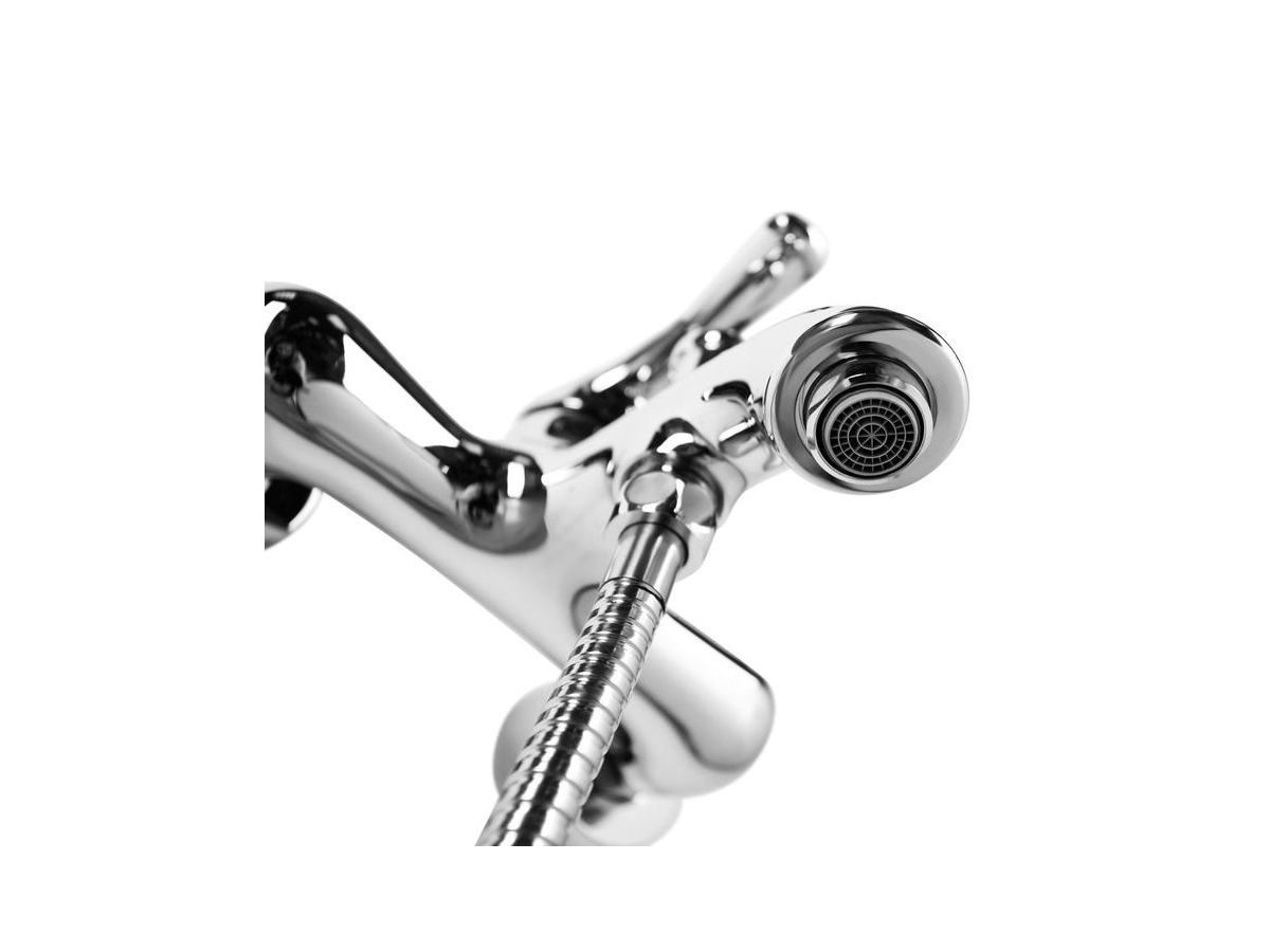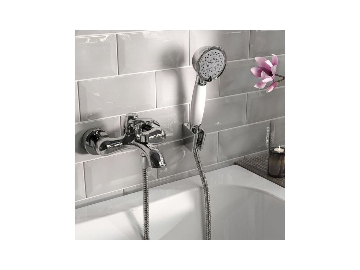 Смеситель для ванны Oldie – превосходное сочетание утонченной формы и современного функционала в ретро стилистике. Со смесителями из коллекции Oldie легко воплотить в жизнь любые дизайнерские идеи –корпус, выполненный в популярном цвете хром, и оригинальные детали белого цвета легко сочетаются с любыми фактурными поверхностями и интерьерными решениями. Продуманные пропорции, наклон излива и положение аэратора позволяют с комфортом размещать руки под смесителем, что делает его удобным для всей семьи. В комплекте душевые аксессуары в тон смесителю — лейка с держателем и гибкий шланг для душа (1,5 м) в оплетке из нержавеющей стали с защитой от перекручивания.