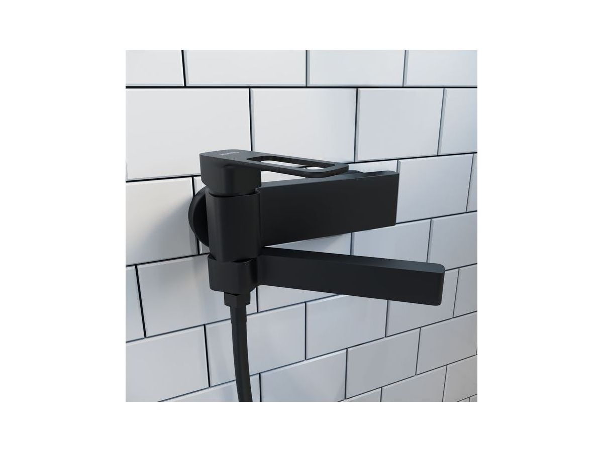 Смеситель для ванны Slide в актуальном черном цвете со складным изливом — стильное функциональное решение без лишних деталей, подойдет и для ванны, и для душевой кабины. Отверстие-петля на ручке выполняет декоративную и при этом практичную роль — ее легко захватить даже намыленной рукой и отрегулировать напор или температуру. Без душевых аксессуаров в комплекте.