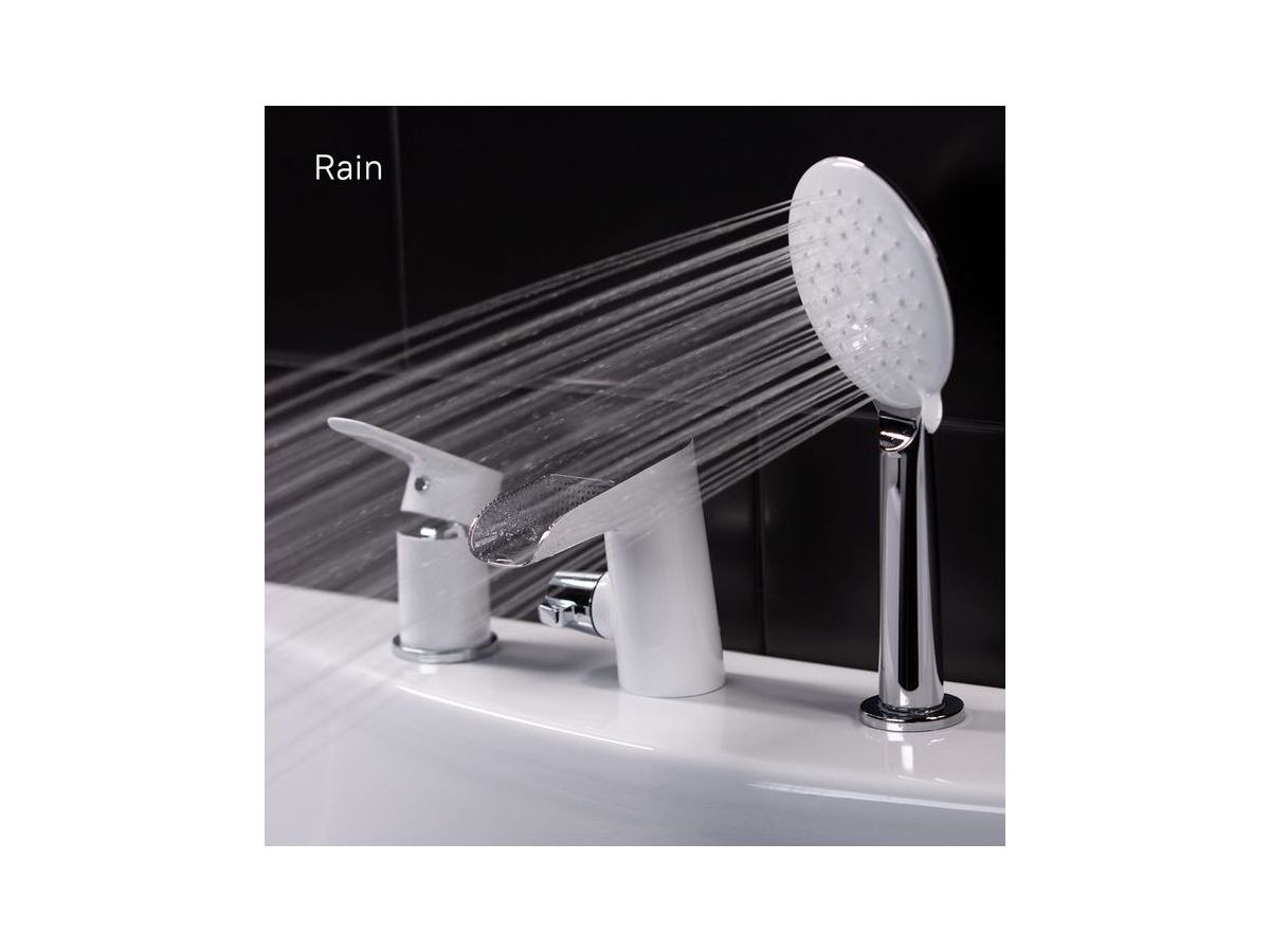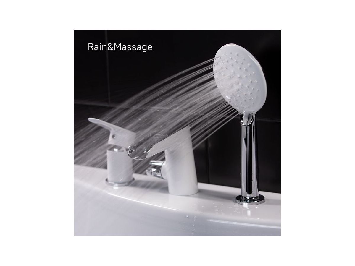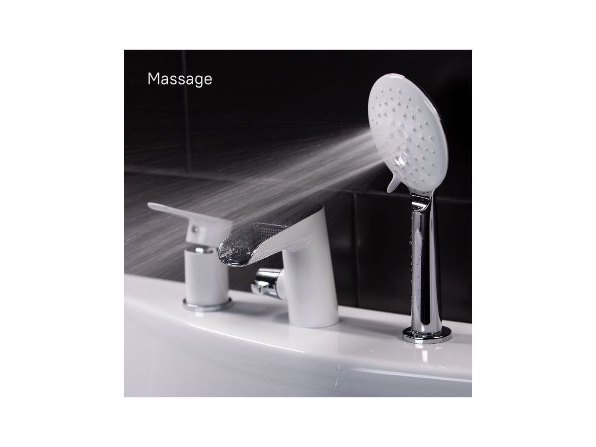 Смеситель для ванны из коллекции Cloud – воплощение легкости и простоты. Игра двух цветов — белого и хромированного — создает утонченный и стильный продукт, который подойдет к интерьеру в современном и классическом стиле. Широкий каскадный излив обеспечивает не только красивый и роскошный поток воды, но и приятный функционал: пропускная способность такого смесителя значительно увеличена, что позволяет набрать ванну в несколько раз быстрее. Монтаж на борт ванны позволяет установить смеситель и его отдельные элементы в наиболее подходящем с точки зрения дизайна месте. В комплекте трехрежимная лейка для душа и шланг из нержавеющей стали (2 м) с защитой от перекручивания.