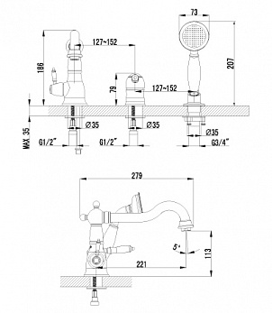 Смеситель Lemark Vintage LM4845B на борт ванны