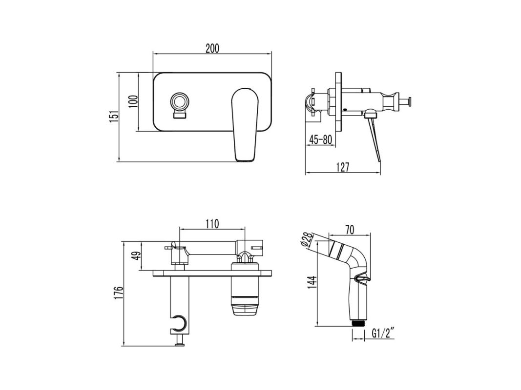 - Аксессуары в комплекте: лейка гигиенического душа с регулятором напора воды, шланг 1,2 м