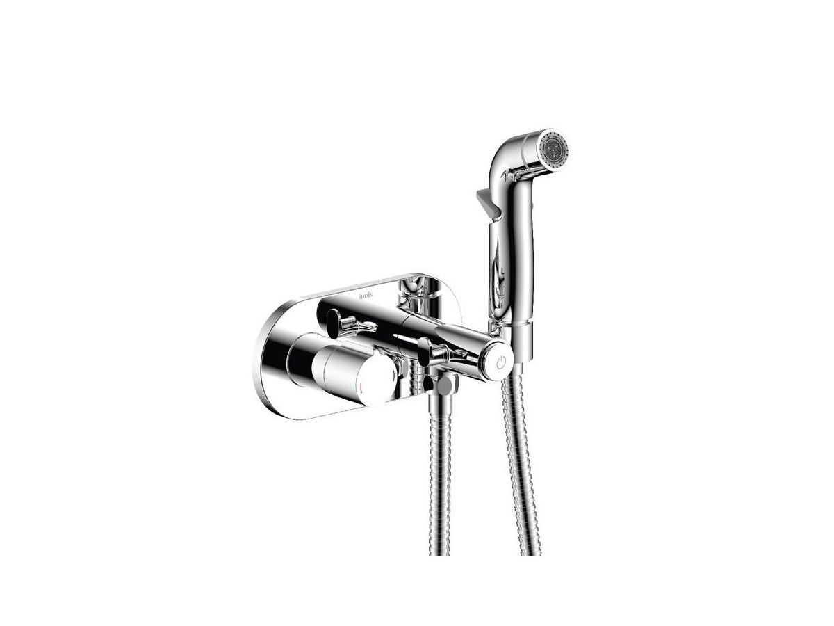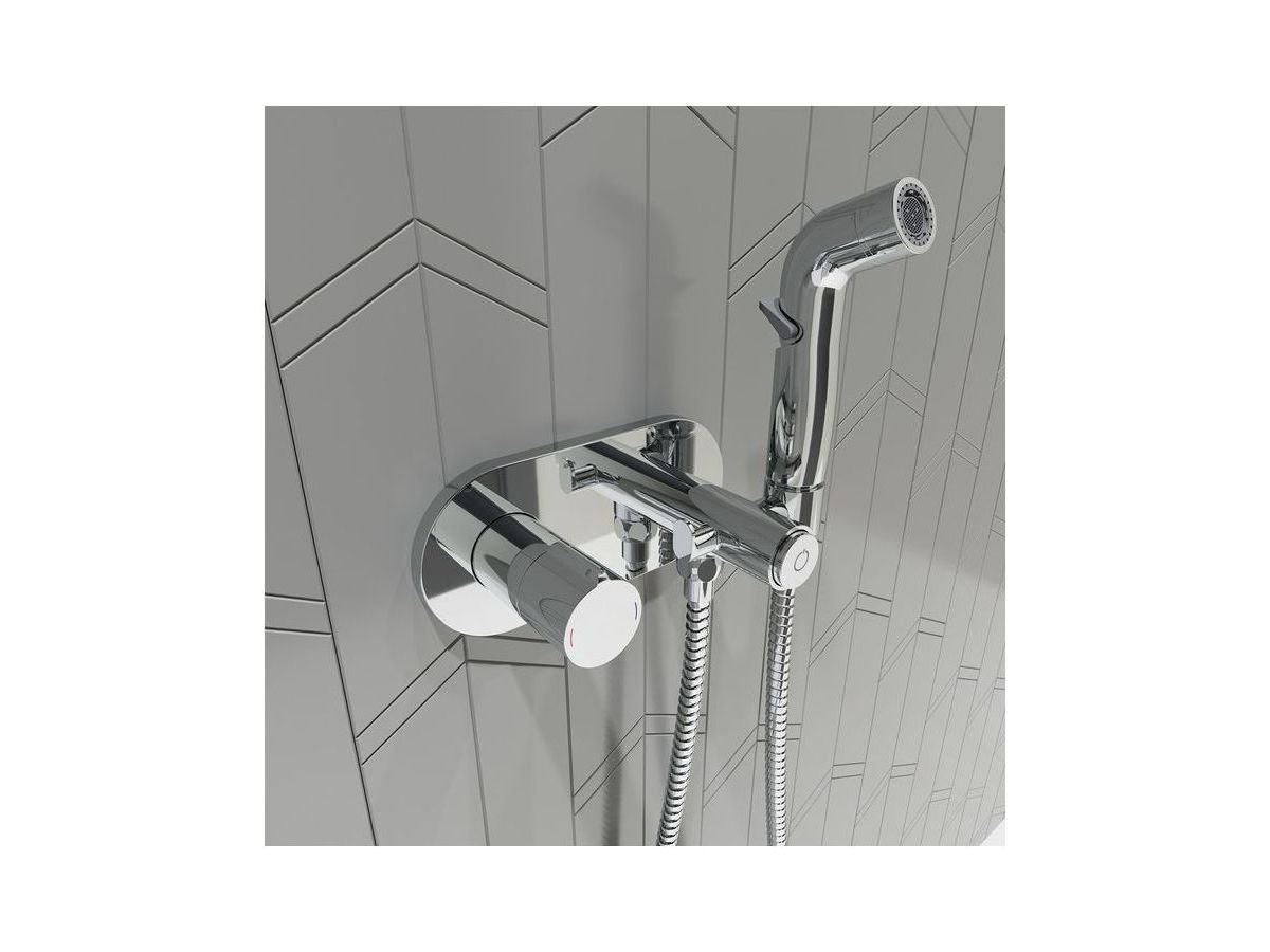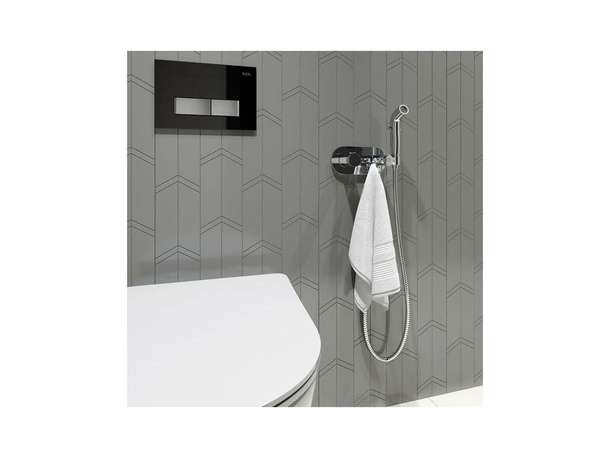 Смеситель из новой коллекции Axes отличается ультрамодным дизайном и продуманным конструктивом – гигиенический душ удобно ложится в руку, а рычажное управление позволяет регулировать напор воды в одно касание. Смеситель запоминает комфортную температуру воды, благодаря этому гигиенические процедуры становятся еще более комфортными. Компактная лейка фиксируется непосредственно в самом смесителе, что экономит пространство, а скрытый монтаж в стену позволяет сохранить эстетичный внешний вид любого современного санузла. Гигиеническая лейка, крючок и душевой шланг (1,5) в металлической оплетке в комплекте.