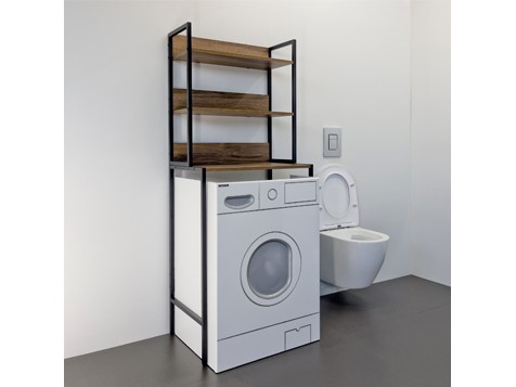 Напольный стеллаж над стиральной машиной дает возможность обеспечить много места для компактного хранения косметических и гигиенических средств, а также украсить интерьер ванной комнаты. Стеллаж поставляется в разобранном виде.