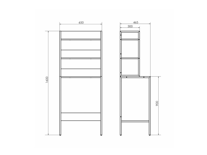 Напольный стеллаж изготовлен из стального профиля, покрытого черной матовой эмалью, полки из ЛДСП цвета дуб темно-коричневый. Стеллаж для установки над стиральной машиной.