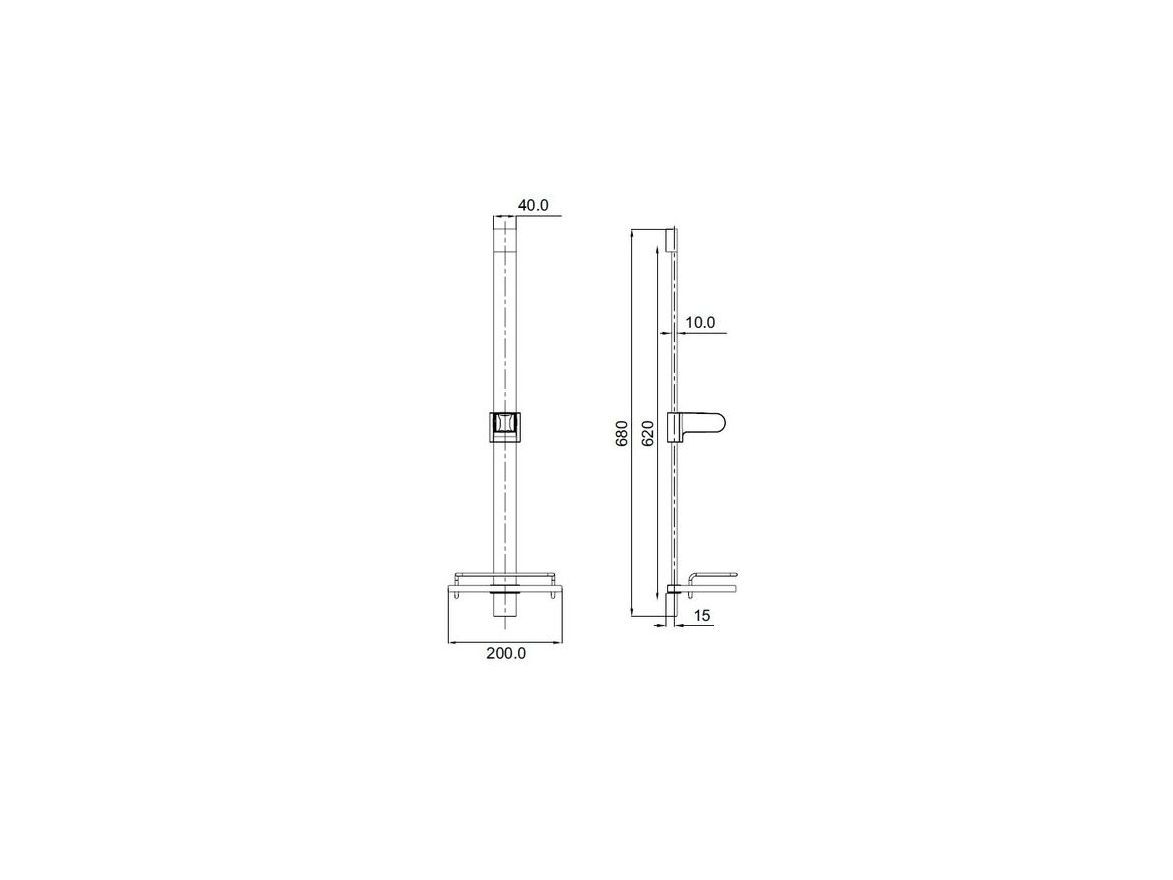 Стойка для душа. Комплектация: полка, держатель лейки, крепления. Материал: нержавеющая сталь. Высота стойки: 68 см, сечение прямоугольное