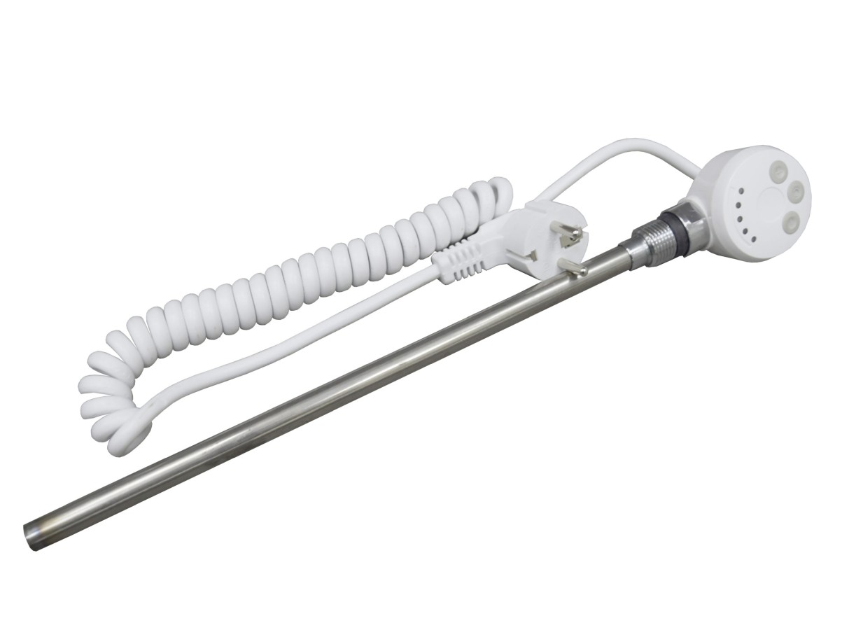 ТЭН для полотенцесушителя — электрический нагревательный элемент с терморегулятором используется для нагревания антифриза в электрических полотенцесушителях. ТЭН с терморегулятором имеет пять уровней нагрева в диапазоне 30° — 60°С. Нагревательный элемент полотенцесушителя с теническими характеристиками: