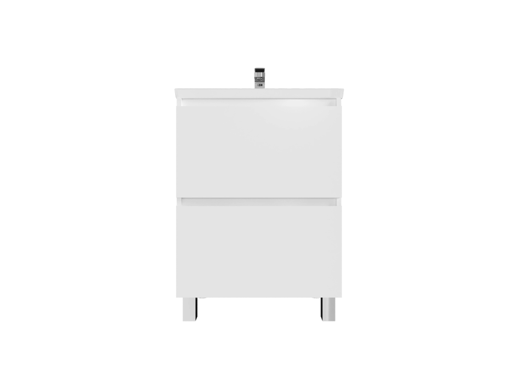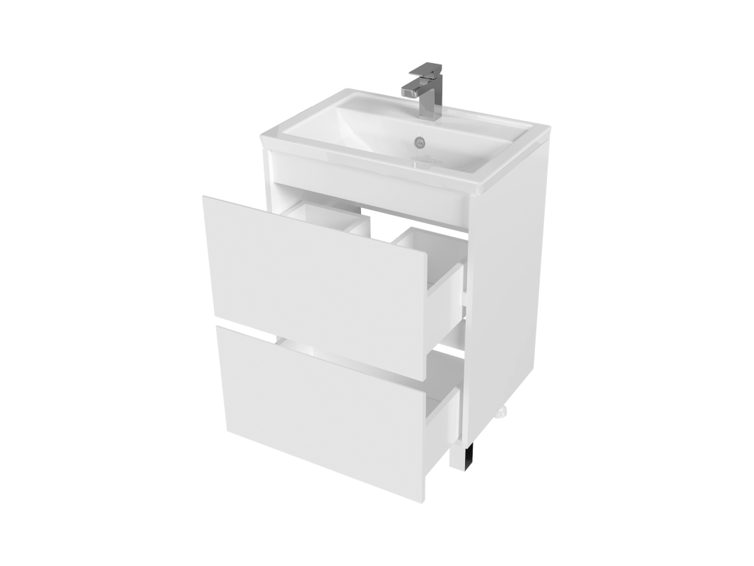 Стильная и лаконичная тумба для ванной комнаты, в дизайне которой нет ничего лишнего - только минимализм и акцент на безоговорочную функциональность. Отсутствие ручек и строгие геометрические формы делают ее актуальной для интерьеров в абсолютно любой современной или эклектичной стилистике. Благодаря качественной фурнитуре ежедневное использование тумбы отличается максимальным удобством. Практичное разделение ящиков на небольшие отсеки позволяет с комфортом организовать хранение косметики и других вещей. Глянцевая белая поверхность гармонично дополнит пространства в любой цветовой гамме.