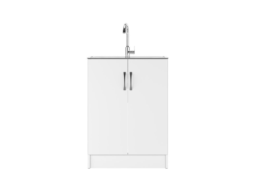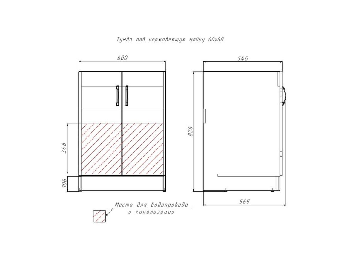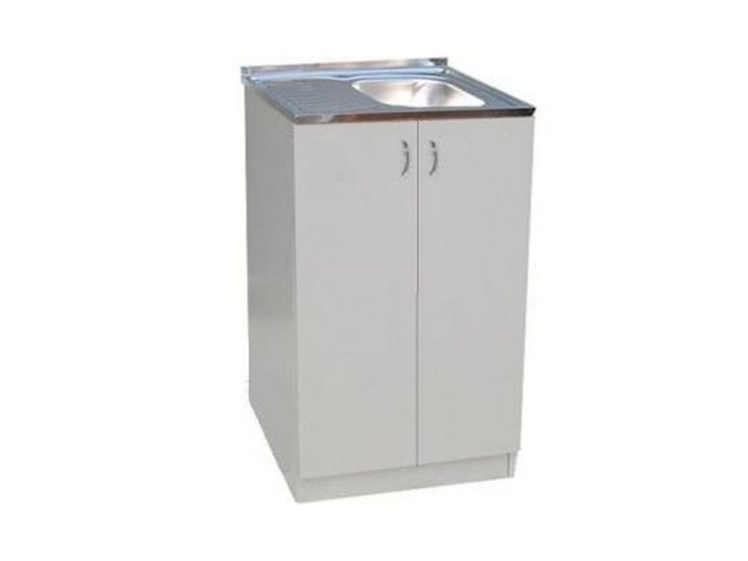 Тумба под нержавеющую мойку 45 см в ширину имеет одну дверцу. Тумбы 50 см, 60 см и 80 см шириной, имеют две распашных дверцы. Корпус и фасад выполнены из ЛДСП.