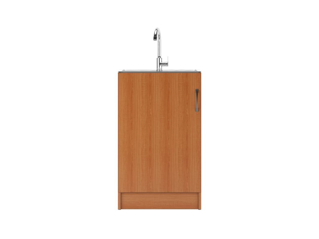 Тумба под нержавеющую мойку 45 см в ширину имеет одну дверцу. Тумбы 50 см, 60 см и 80 см шириной, имеют две распашных дверцы. Корпус и фасад выполнены из ЛДСП.