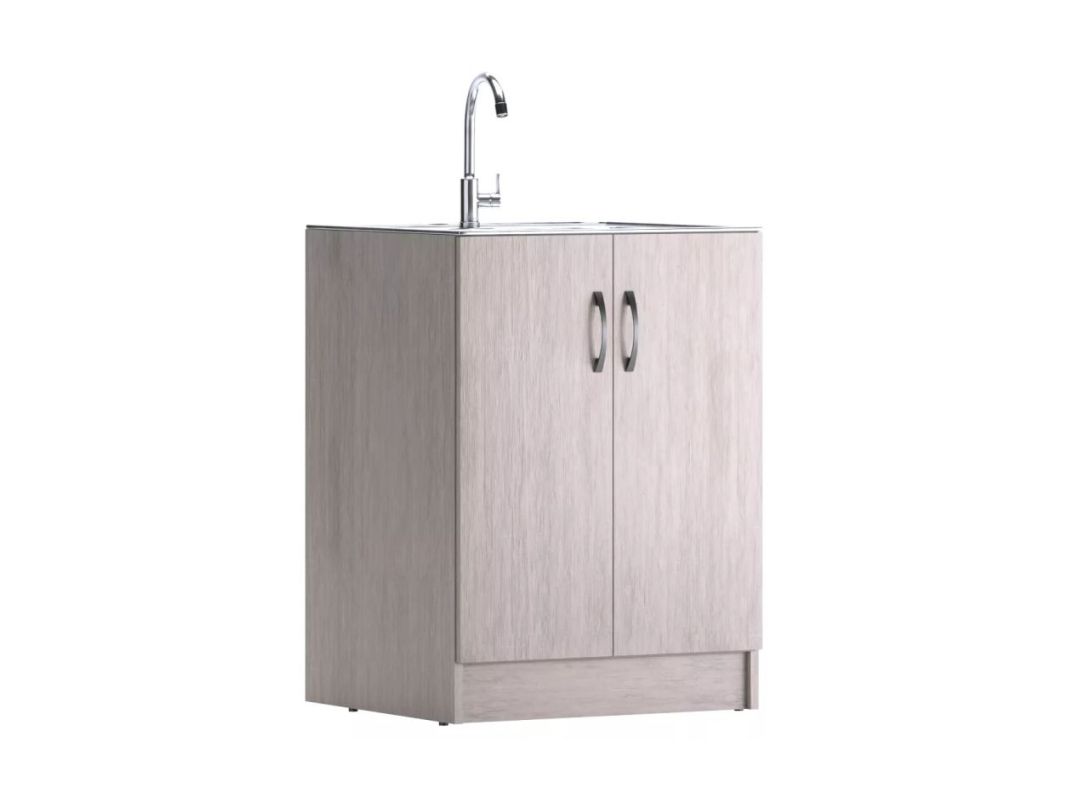 Тумба под нержавеющую мойку 45 см в ширину имеет одну дверцу. Тумбы 50 см, 60 см, 80 см и 100 см шириной, имеют две распашных дверцы. Корпус и фасад выполнены из ЛДСП.