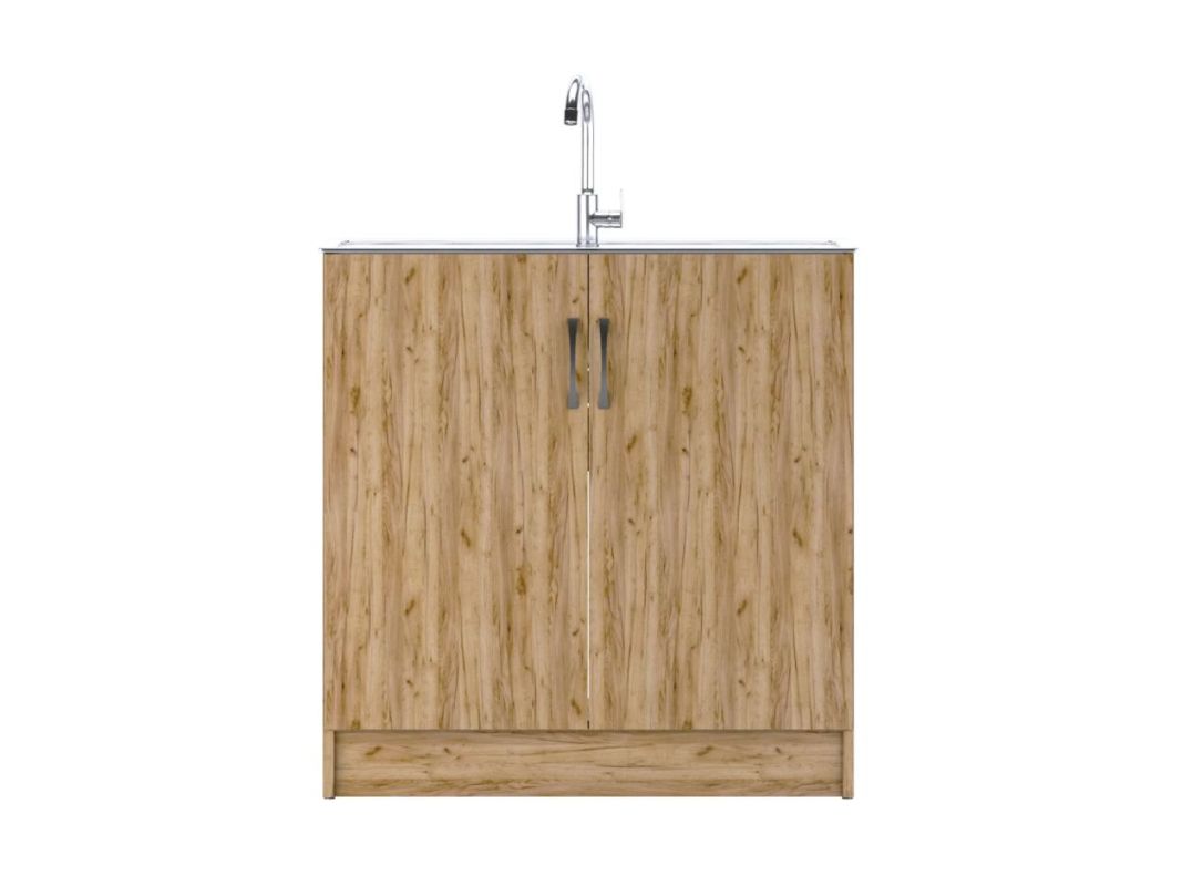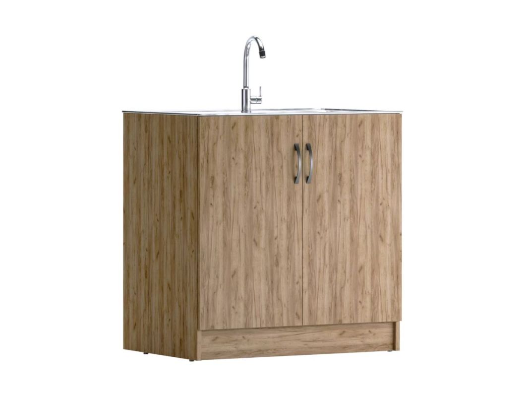 Тумба под нержавеющую мойку 45 см в ширину имеет одну дверцу. Тумбы 50 см, 60 см, 80 см и 100 см шириной, имеют две распашных дверцы. Корпус и фасад выполнены из ЛДСП.