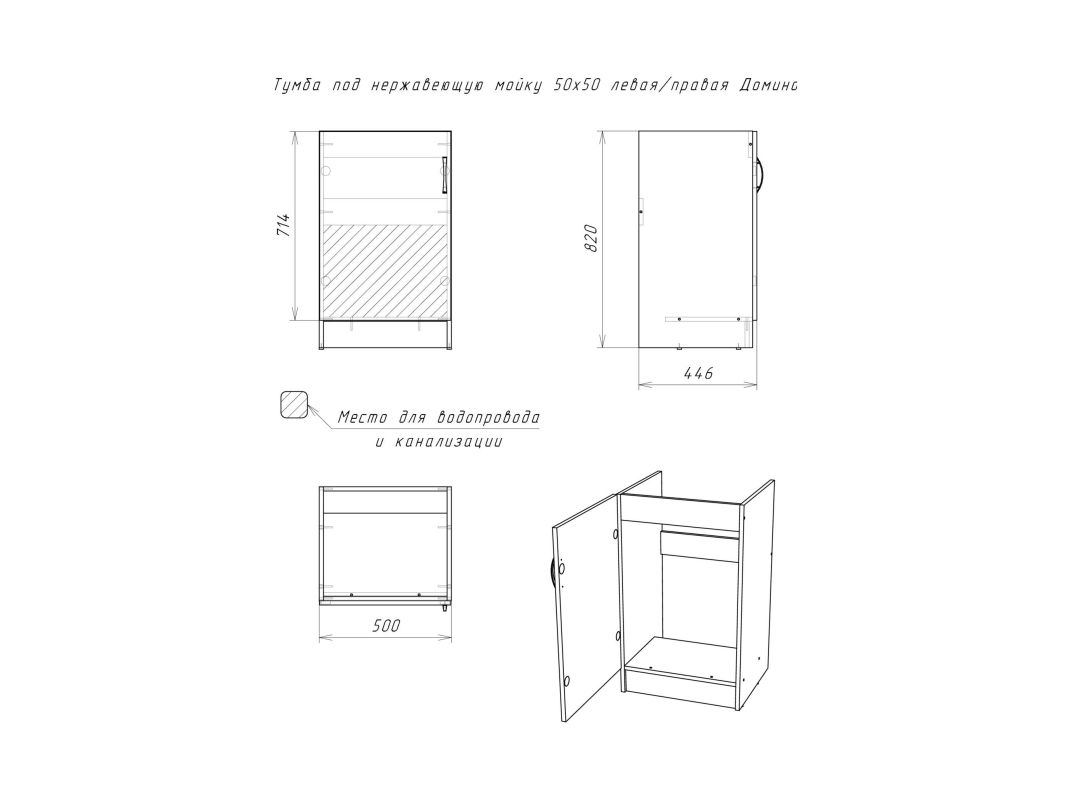 Тумба под Мойку «Домино» Нержавеющая 50x50, Антрацит (D5050An-1)