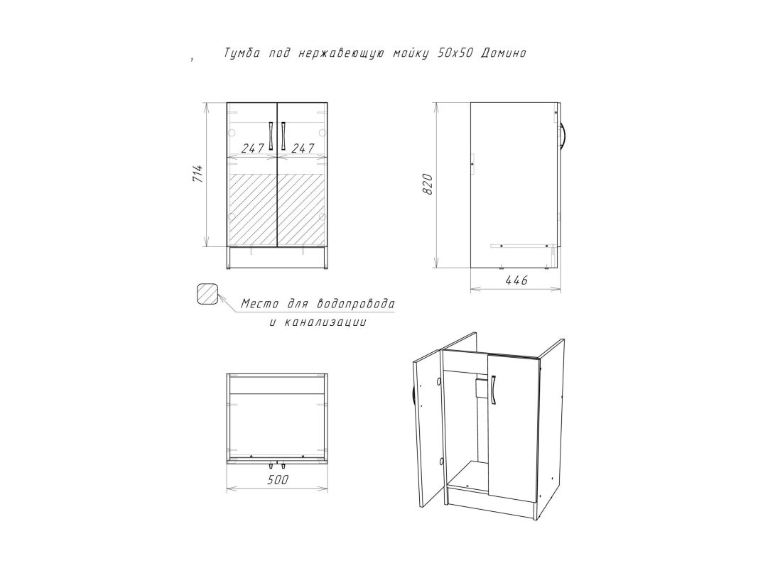 Корпус и фасад выполнены из ЛДСП. Кухонная мебель от компании ДОМИНО впишется в интерьер и поможет организовать пространство правильно.