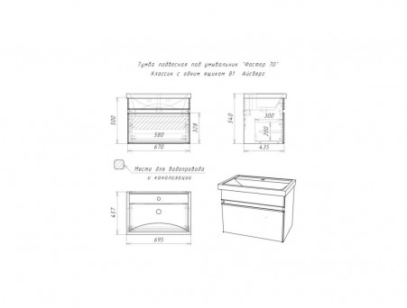 В серию КЛАССИК входят тумбы под умывальник от 45 см до 100 см в ширину.
