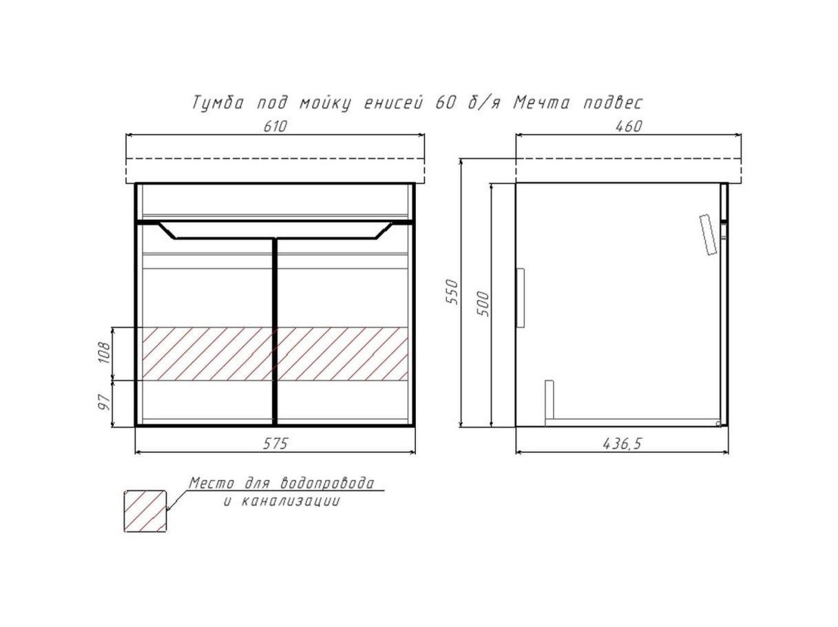 Дополнительно необходимо приобрести умывальник Енисей 60, Миранда 60 или Como 60