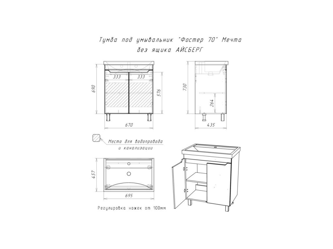 Тумбы подвесные под умывальник с распашными дверцами и полкой для хранения. Напольная тумба под умывальник МЕЧТА с распашными дверцами, на регулируемых ножках до 30 мм.